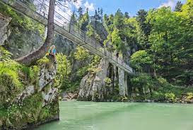 We briefly stop at the Entenlochklamm and walk the smugglers` trail. This leads over 2 suspension bridges around the entrance of the gorge. The path is scheduled for 40 minutes - it takes us 8 (the path is probably made for children with the parents).